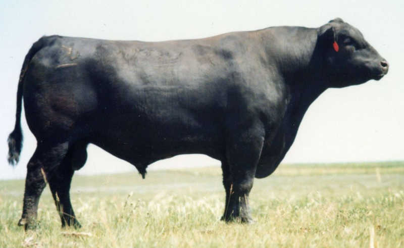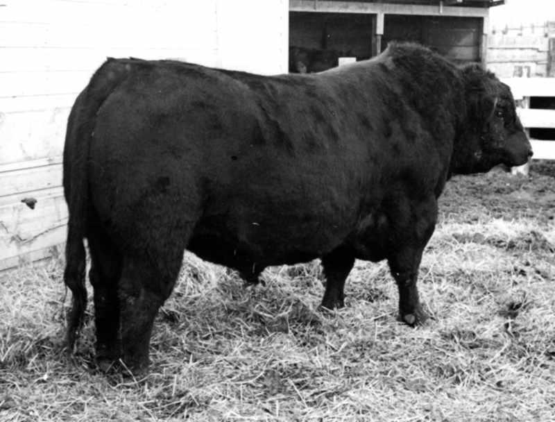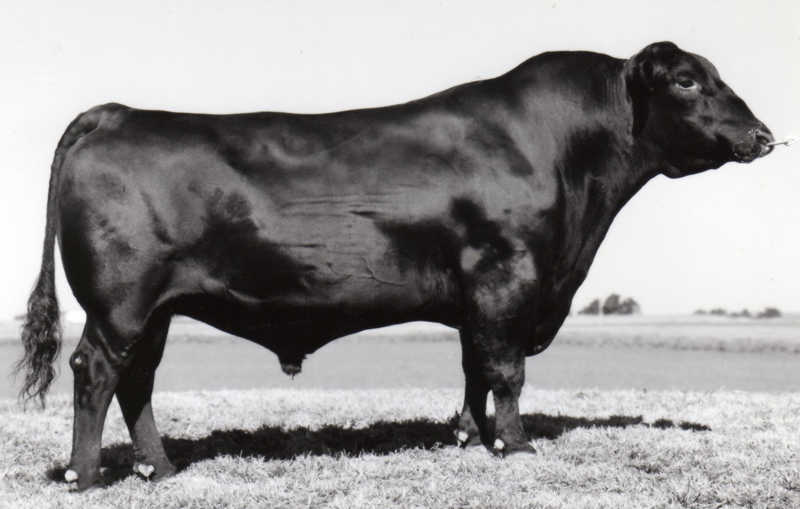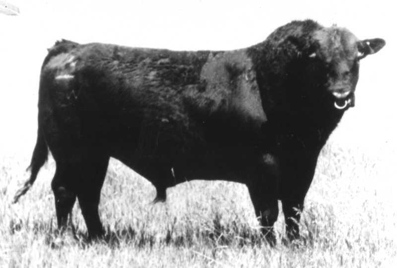 Another foundation female is the dam of the great Rito 2100 GDAR, Blackcap Lady 999 GDAR. Her influence is seen throughout the breed through the extensive use of 2100. 2100 daughters are long necked, and feminine with lots of maternal ability. 999 sold in 1984 to Jolly Roger Angus for $24,000.